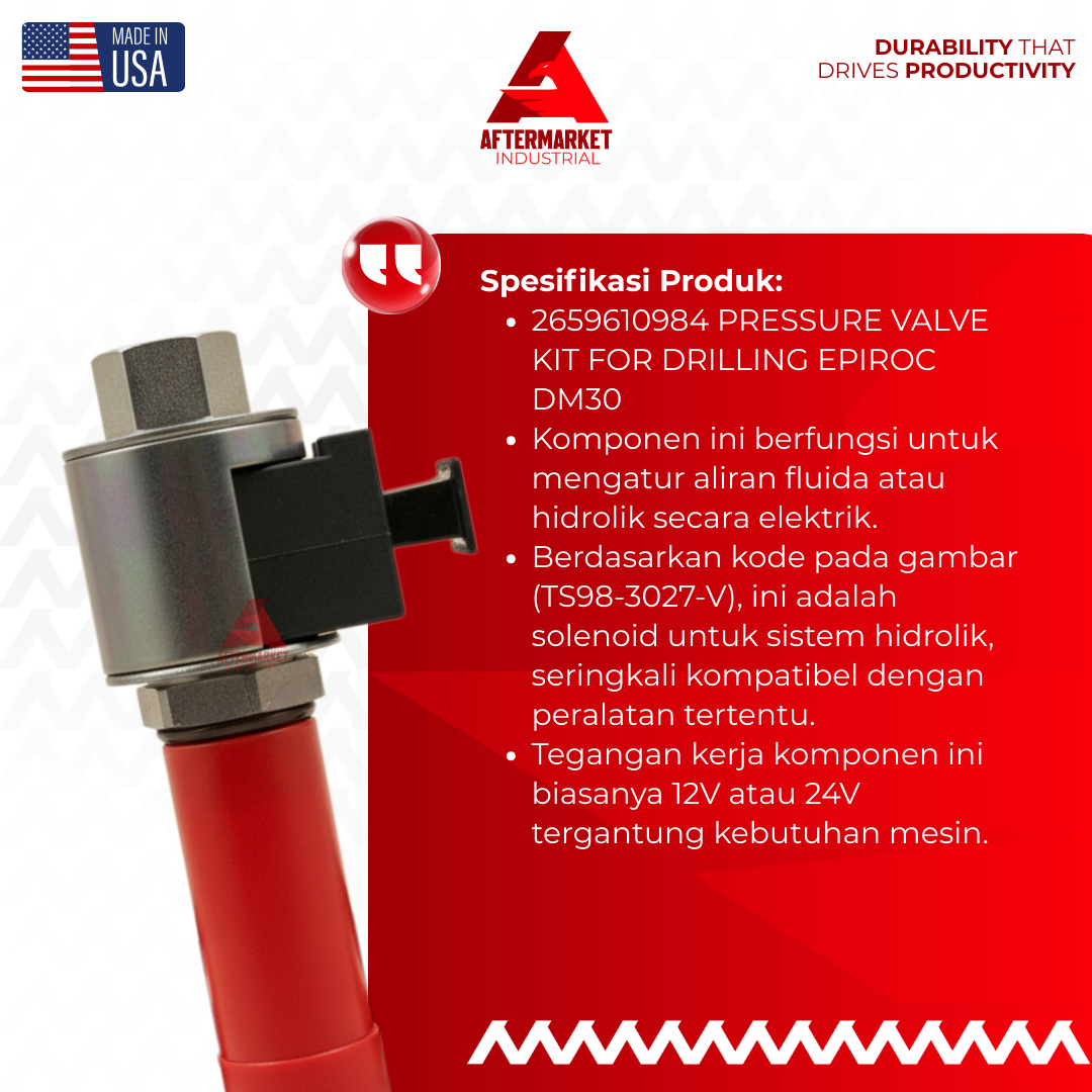 Katup solenoid ini memiliki peran penting pada sistem kerja mesin. Secara khusus, komponen ini mengatur aliran fluida melalui proses elektrik. Akibatnya, alat berat tambang mampu beroperasi pada tingkat tekanan stabil. Selain itu, komponen pengatur hidrolik ini membuat pergerakan mesin presisi. Mutu Pressure Valve 2659610984 memastikan kinerja operasional mencapai batas maksimal. Sistem elektrik hidrolik pasti menyalurkan aliran cairan tanpa batas hambatan. Operator alat berat pasti merasakan kendali mesin yang sangat responsif.