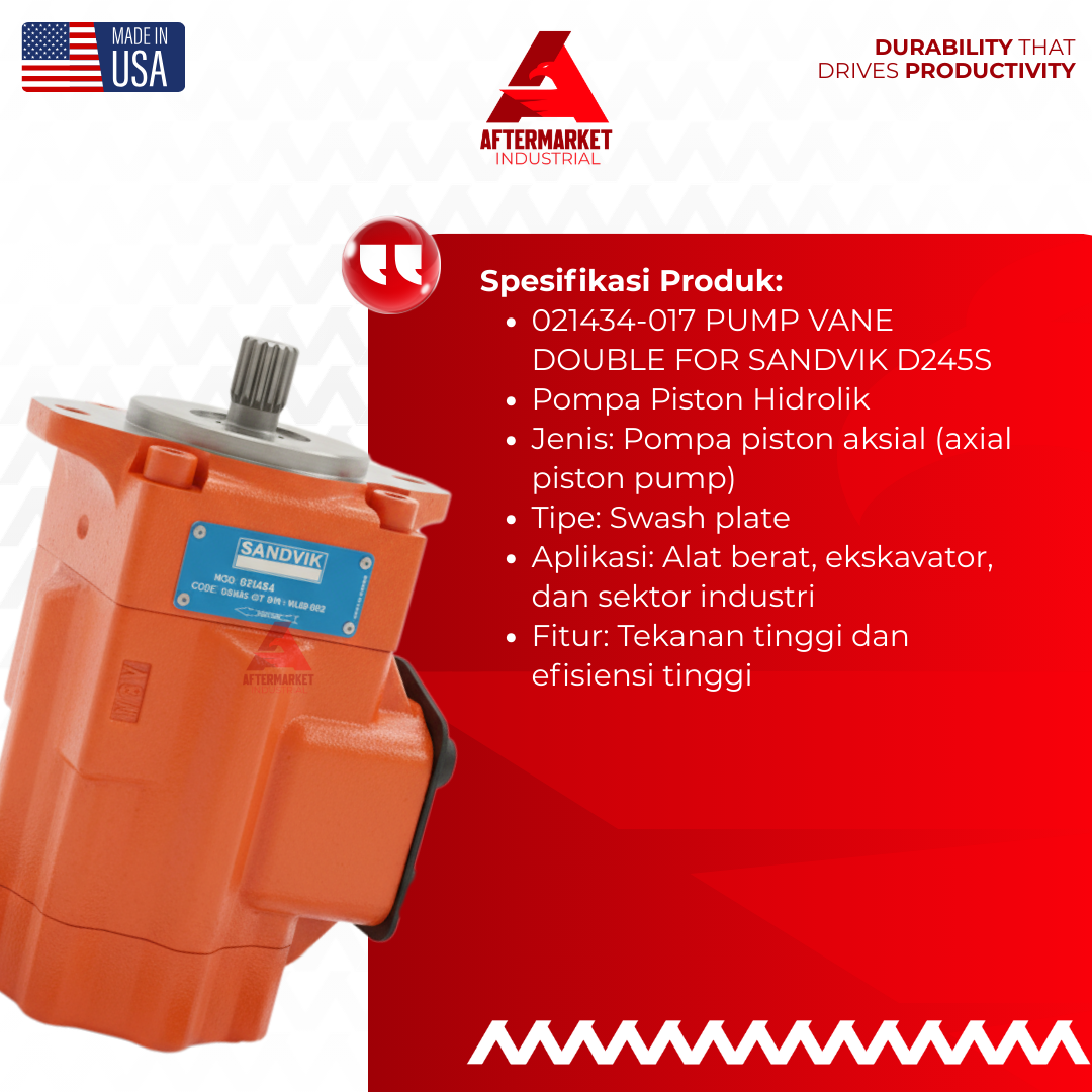 – Sparepat 021434-017 Pump Vane Double Sandvik Pompa Piston Hidrolik